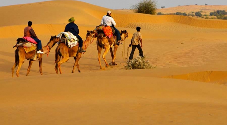 - Jaisalmer- Jain temples, Jaisalmer Fort, Patwon-ki-Haveli, Gadisar lake, Camel safari at Sam desert