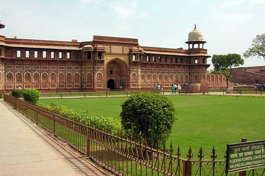 Agra Fort It is situated on the bank of river Yamuna and was constructed by Mughal emperor Akbar which began in the year 1565. This monument encompasses the impressive Mughal style of art and architecture. This powerful fortress is made up of red sandstone and comprises of vast number of richly decorated buildings like Diwan-i-Khas, Khas Mahal, Jahangir Palace and many others. Agra Fort is a great symbol of resilience, strength and power, as it stands tall in full glory.